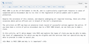 - Add internal and external links where appropriate. For this part, change back to the visual tab, highlight the anchor text, then select the “insert/edit link” option. Then you can paste the link into the box.