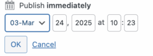 - If scheduling for a future date, click on the “Immediately” link next to “Publish” and select the desired date and time.
