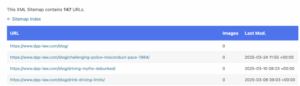 - Confirm that the newly published blog post is now included in the Rank Math-generated post sitemap by hitting the “sitemap url” and searching for the URL of your upload.